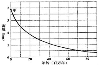 1、单选题 读海底深度与其岩石年龄关系图,回答下列问题。