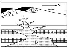 (2)比较A、B岩层形成的地质作用。A ,B 。