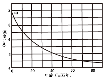 3、单选题 读某处海底深度与其岩石年龄关系图,回答下列问题。