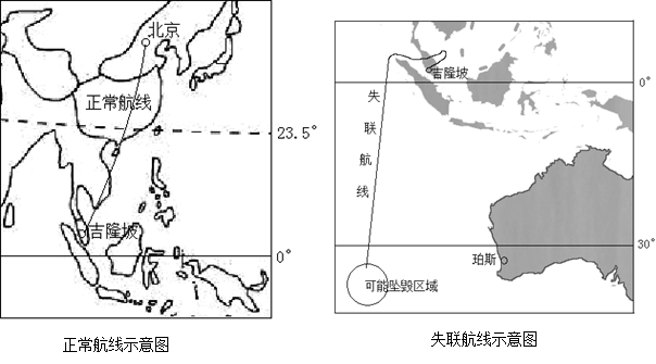 (1)正常航线自南向北经过的自然带有哪些?(3分)此时失联航线自北向南经过区域的主要风向有哪些?(3分)