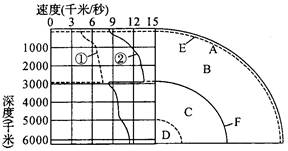 4、单选题 下图是“地震波速度与地球内部圈层结构”示意图,其中E、F是地球内部的两个不连续界面,它们的名称依次是(?)