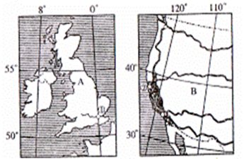 本题解析:1.若一艘游轮于2008年2月5日上午8时(当地时间)从B国港口城市②起航,经过28天13小时到达A国港口城市①,A位于0时区,B位于西八区,当游轮起航时,A的时间为2008年2月5日16时,航行了28天13小时,到达当地区时为3月5日5时。