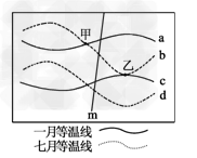 4、单选题 下图为某地区一月、七月等温线示意图,m表示大陆海岸线,读图回答