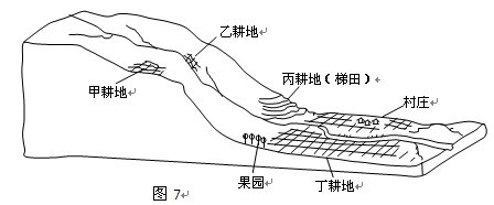 本题解析:本题考查区域的可持续发展。平原地区适合发展种植业,山区适合发展林业。坡度较缓可以修建水平梯田。图中乙处耕地坡度最大,不适合发展种植业,应退耕还林(草)。所以本题选择B选项。