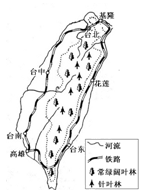 3、单选题 读“台湾岛森林、河流和铁路分布示意图”,回答以下各题。