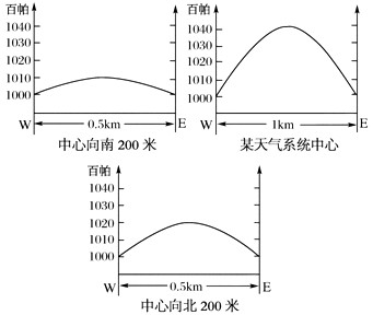 2、单选题 下图为沿某天气系统中心、距中心正南200米和距中心正北200米分别作的三条东西向剖面图。读图回答1—3题。