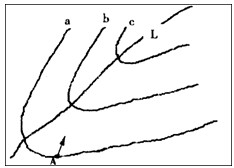 1、若线a、b、c为等高线,箭头表示