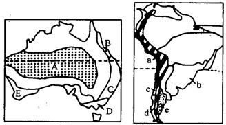 (2)澳大利亚东岸B、C、D三地气候与南美洲西岸a、c、d三地气候的排列都是南北更替、南北延伸,形成这种状况的相同因素主要有?(4分),不同因素主要有?。(4分)
