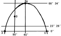 1、单选题 图中AB弧线是昏线,BC弧线是晨线,读图完成问题。