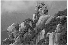2、单选题 下图为黄山“天狗望月”景观,“天狗”是由花岗岩组成,独居峰顶,翘首望月。读图回答小题。