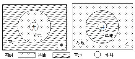 小题1:甲地以井为中心在草原上形成沙地,其原因可能是(?)