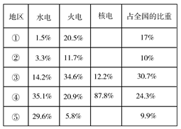 小题1:根据表格资料各种能源资源的主要消费比重判断,⑤地水电占比例较大,判断为西南地区。