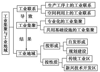 小题6:工业联系必然引起工厂近距离集聚,从而形成工业地域。图解工业集聚与工业地域: