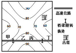 【小题2】读图,甲处与古塔间有一海拔较高的鞍部阻挡,不能看到,A错。乙、丙在隧道内,不能看到,B.C错。丁处与古塔间是山谷,没有阻挡,可以看到全景,D对。
