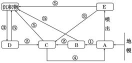 1、单选题 下图为岩石圈物质循环示意图,读图回答题。