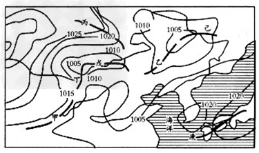 2、综合题 下图为亚洲局部地区某日某时海平面等压线分布图。读图回答问题:(10分)