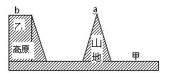 2、单选题  下图中甲、乙两地的纬度相同,a、b两地海拔高度相同,回答下列小题: