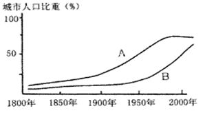 (1)AB两条曲线代表发达国家城市化进程的是______曲线,代表发展中国家城市化进程的是________曲线。