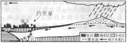 2、单选题 下图为济南市“趵突泉”形成示意图.读图回答27~28题。