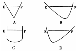 1、单选题  下图为某河流河曲处的示意图,下面四幅河床横剖面示意图中,能正确反映沿EF断面的是(   )
