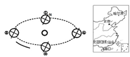 (2)地球处于①位置时,为北半球的 日(二分、二至日),此日太阳直射的纬线是 。该日后,太阳直射点将向 (方向)移动。