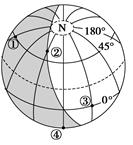 本题解析:本题考查晨昏线图的综合分析。图示②所在的晨昏线部分表示晨线,图示晨线与赤道的交点为6时,则计算②所在的经线为4时,而此时位于晨线上,即表示②地日出时间为4时,故上午为4:00—正午12:00,故计算昼长为16小时。