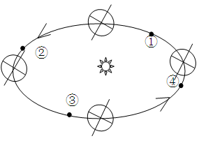 5、单选题 北京时间2013年12月2日凌晨2点17分,嫦娥三号月球探测器进入太空。2013年12月14日21时11分, 嫦娥三号着陆器在月球表面预选着陆区域成功着陆,并与巡视器“玉兔”分离,下图为“地球公转情况示意图”读图回答以下问题。