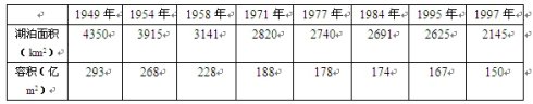 5、单选题 洞庭湖是我国五大淡水湖之一,我国一中学地理小组欲研究其面积的变化情况。以下为该小组查找的部分资料,结合所学知识回答9-10题
