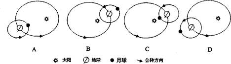 小题2:能正确反映此次日环食发生时日、地、月三者位置关系的图像是