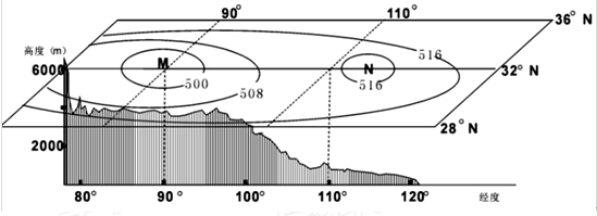 2.由图经纬网图可知,M点为青藏高原,N点为四川盆地,6000米海拔为高空,从而在MN两点之间形成了环流,形成这种环流主要由于地势差异,造成两者近地面气压差及高空气压差。
