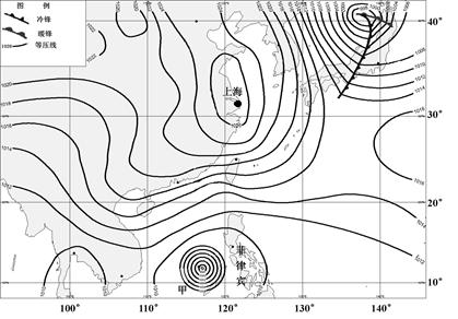 小题1:从等压线图可以看出此时上海受高压中心影响,高压为下沉气流,晴朗干燥,D对;台风为低压中心,A错;高压中心难以形成锋面,BC错。