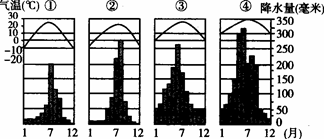 1、单选题 下图中四图分别是我国北京、上海、哈尔滨和广州四城市的气温曲线和降水柱状图,读图回答1~2题。