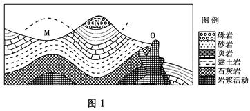 (1)说出M地的地质构造类型并说明其形成原因。