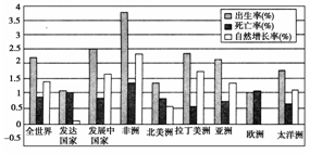 本题考查世界人口的增长。根据图示:世界自然增长率较高的大洲为发展中国家,最高的为非洲,所以新增人口主要位于发展中国家。所以本题选择C选项。