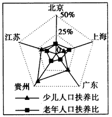 D、江苏的少儿人口抚养比小于北京