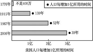1、单选题 2006年,10月17日,美国人口总数已经达到3亿。读“美国人口每增加1亿所用时间图”,回答6~7题。