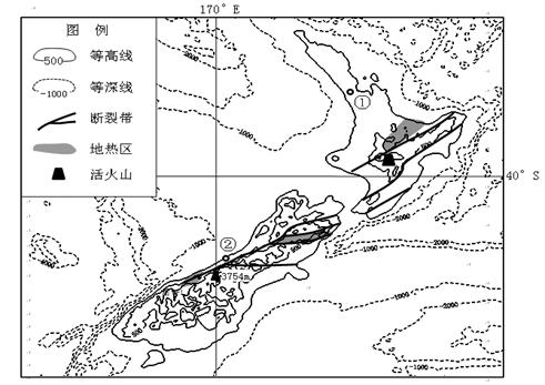 材料一:下图为新西兰及周边海域等高(深)线地形图