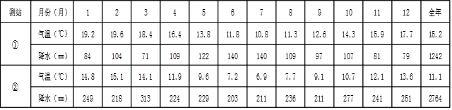 由表可知,②地降水总量多于①地。②地在南纬40°以南,全年受西风影响,①地在南纬40°以北,①地受西风影响的时间要短于②地;②地正好位于西风迎风坡(南岛山脉东北-----西南走向正好与西北风垂直),多地形雨,①地没有这样的降雨条件。