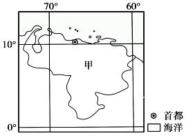 3、单选题 总部位于江苏徐州(约34°N,117°E)的某企业承接了国家甲(下图)价值7.446亿美元的工程机械订单。据此完成下列问题