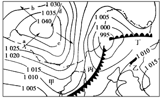 【小题1】A.B.C.d四箭头表示风向,正确的是( )