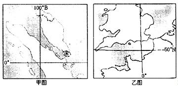(1)读图,根据经纬度和海陆轮廓判断,甲图是马六甲海峡,著名海港是新加坡。乙图是英吉利海峡。