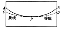 2、单选题 下面俯视图中,虚线是晨昏线,实线为纬线。AB两点的经度差为60°,P点为中点,某天文兴趣小组在P点用量角器测得北极星的高度为68°。读图回答24—25题。