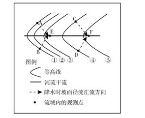 4、单选题 流域内各点的径流汇流方向与等高线垂直,汇流速度与地表坡度有关。据图判断