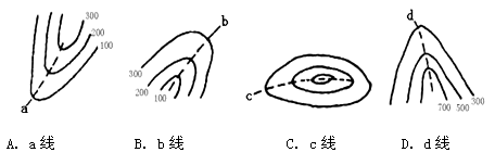 2、单选题 图6所示等高线中,表示集水线的是( )