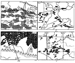 2、单选题 图为我国四个地区荒漠化土地的分布图(阴影为荒漠化土地)。读图,回答下列各题。