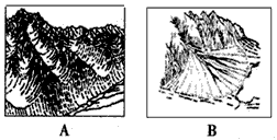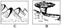 (2)该地区是我国著名的旅游区,其中包括许多独特的地貌景观,在图中①地旅游,最常见的地貌景观是_______(填字母代号);城市多分布在下图中_______(填字母代号)地貌类型上。