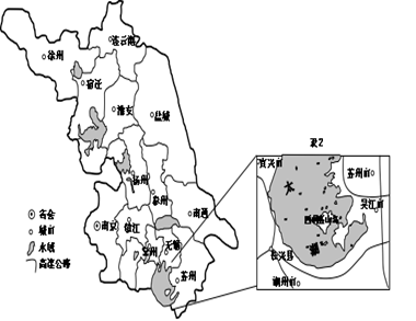材料二: 下表是2010年江苏省苏北地区部分经济数据统计表。下图是江苏省主要城市分布图和太湖地区示意图。