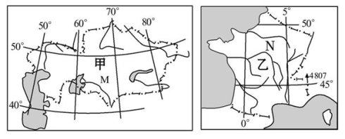 3、综合题 读下面甲、乙两国图,回答问题。