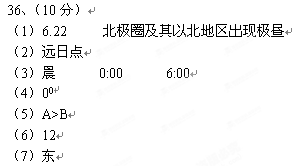1、综合题 读图(阴影部分为夜半球),回答下列问题:(10分)