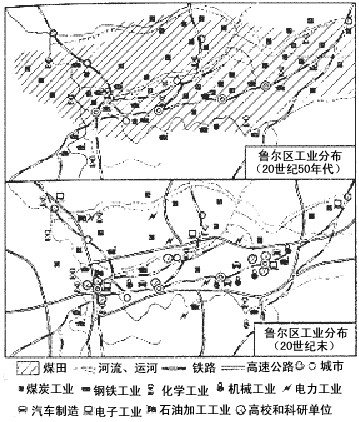 (1)20世纪50年代以前,鲁尔区成为德国最重要的重化工业基地,凭借的是当地的________、________、________和________等工业发展的优越条件。